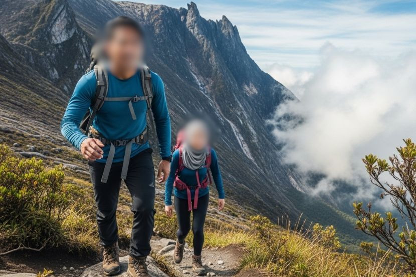 Netizen beranggapan suami wanita itu agak melampau kerana membiarkan isteri bersama orang lain ketika turun dari gunung berkenaan.