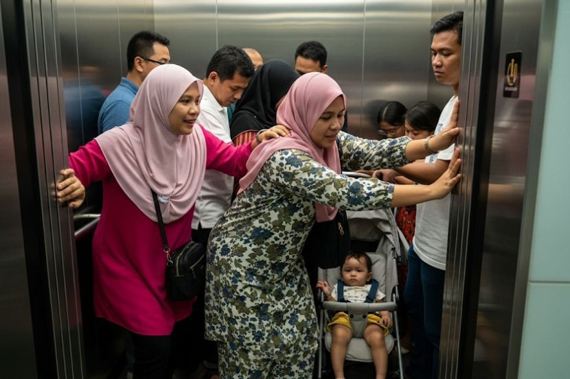 “Sepanjang dalam tu, lif dipenuhi dengan orang yang 'tangan kosong'. Banyak kali lif buka dan tutup, tapi susah nak masuk sebab semua nak berebut.