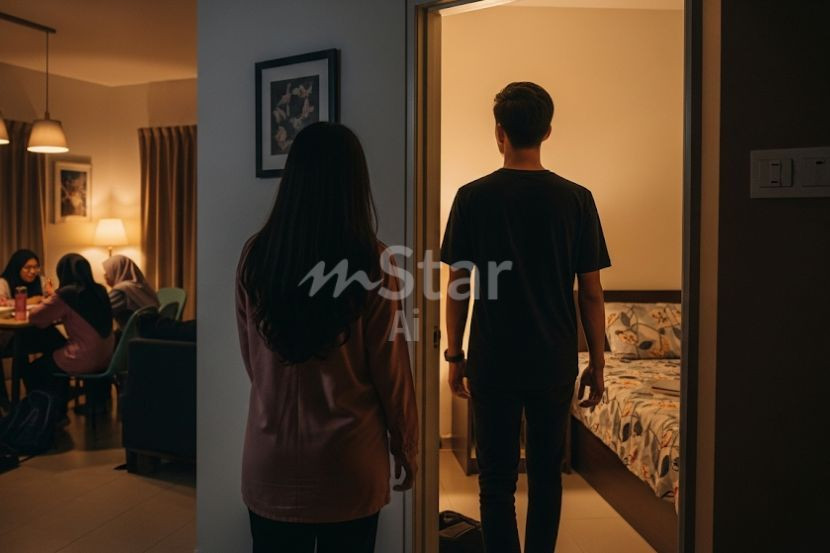 "Satu hari tu, saya bangun pagi nak mandi, keluar dari bilik dengar suara dia dengan bf tengah borak-borak kat dapur.