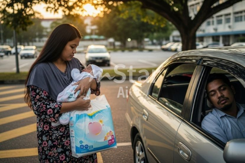 "Kakak dah dua kali beranak tanpa suami, masa tu bukan dia atas kapal pun tapi tidur dalam kereta. Bini turun discharge sendiri, bawa baby dengan barang pusing keliling parking cari mana laki dia.