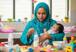 - Kejadian berlaku semasa dia bancuh susu sambil dukung bayi.
