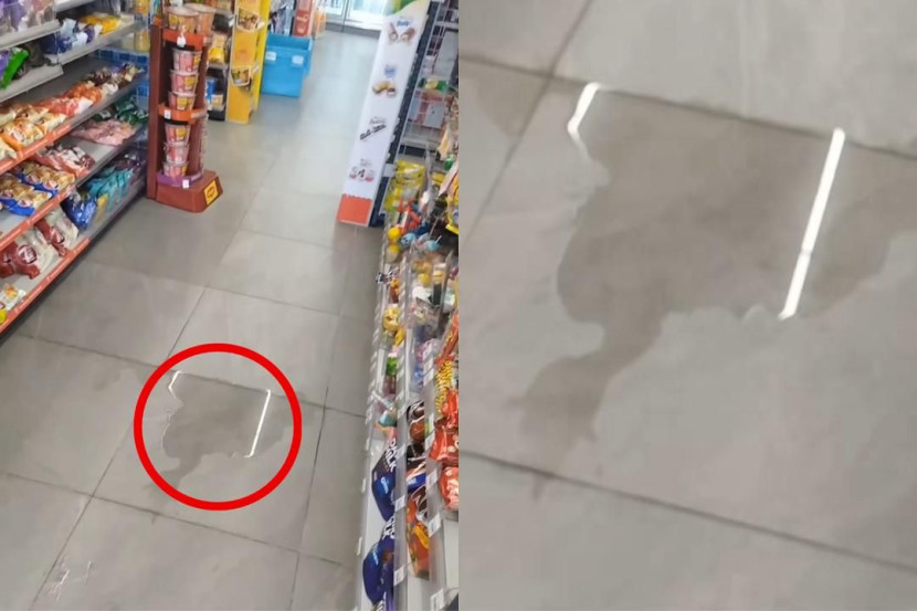 Menerusi video [Tonton sini] yang dikongsi, dapat dilihat takungan air, dipercayai kencing di lantai kedai tersebut.