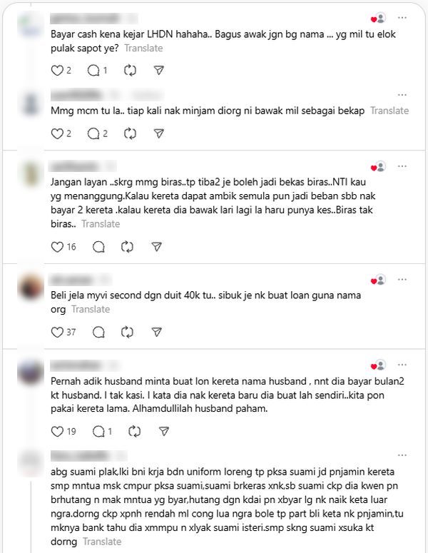 Netizen memuji ketegasannya, dan ramai berkongsi pengalaman serupa apabila dipujuk jadi penjamin atau buat loan untuk saudara.
