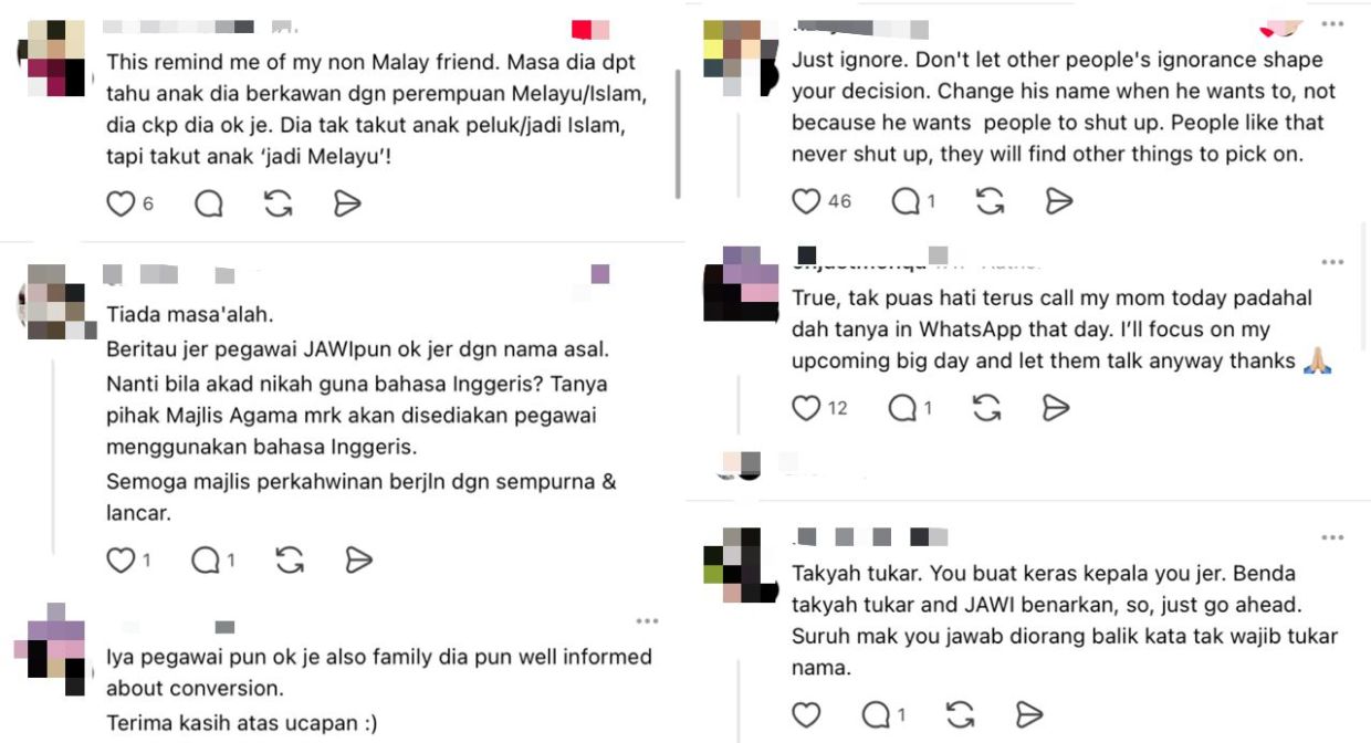 Dalam pada itu, seorang netizen memberi pandangan agar bakal suaminya mengekalkan nama asal jika maksudnya baik.