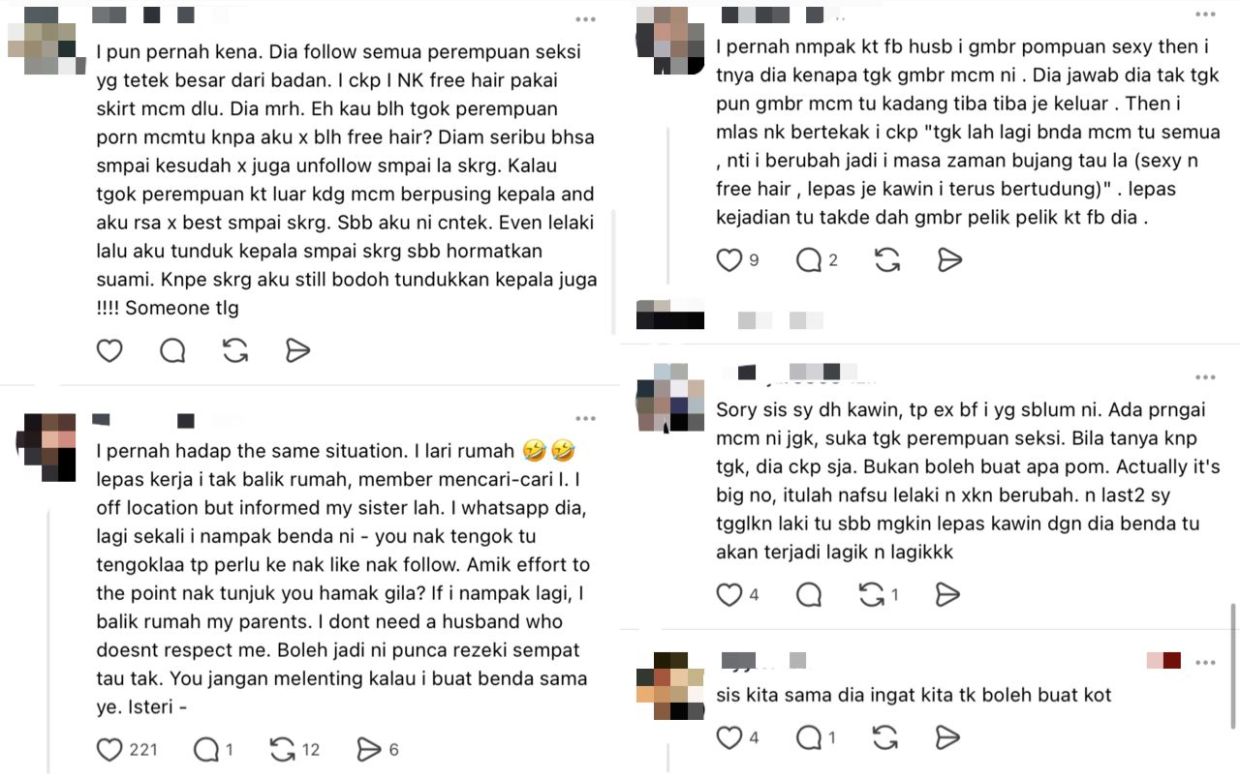 "Suami saya like gambar perempuan seksi dan siap follow (ikut) lagi semua wanita tu. Dia minta maaf lepas tahu saya nampak semua (perbuatan) tu.