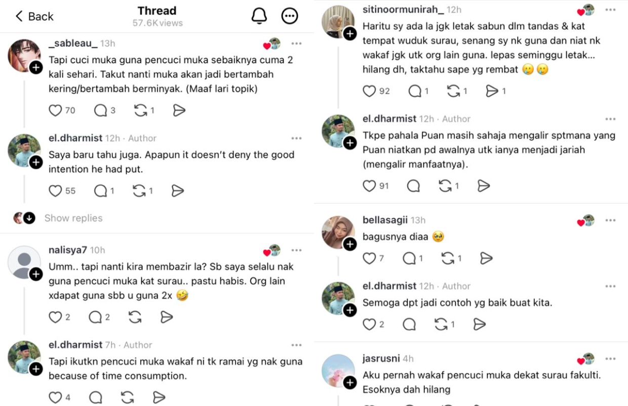 Malah, lelaki itu turut mengajaknya untuk sama-sama menggunakan pencuci muka itu agar si pewakaf tidak putus mendapat ganjaran kerana kebaikannya.