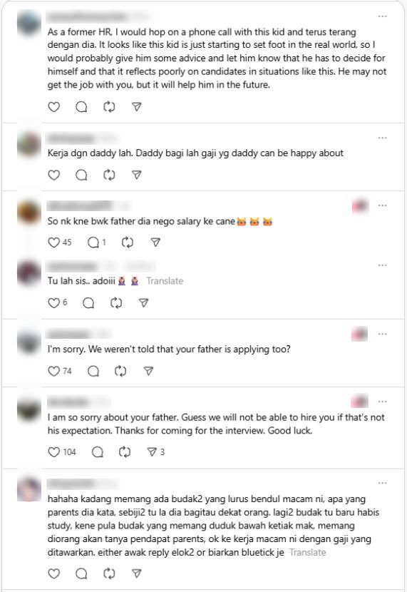Seorang kakitangan HR berkongsi pengalaman berdepan calon yang ragu-ragu terima tawaran kerana bapanya kurang setuju mengenai gaji.