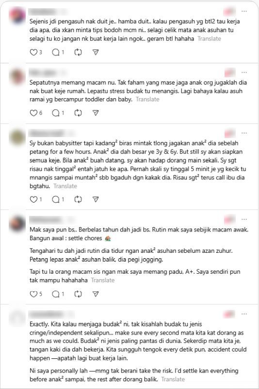 "Ya ini betul! Macam orang kerja ofis, masa tu ke dia memasak, sidai kain? Alasan bang**g. Dalam waktu bekerja, rancang masa anda sebelum anak asuhan masuk.