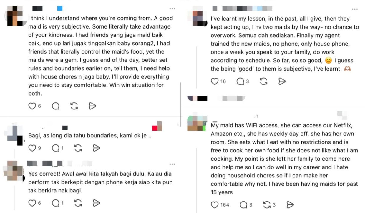 "Awak post ni untuk cari orang bersetuju dengan awak je ke? Kalau maid tak buat kerja, berkepit dengan telefon tapi dah kerja dengan awak sembilan tahun.