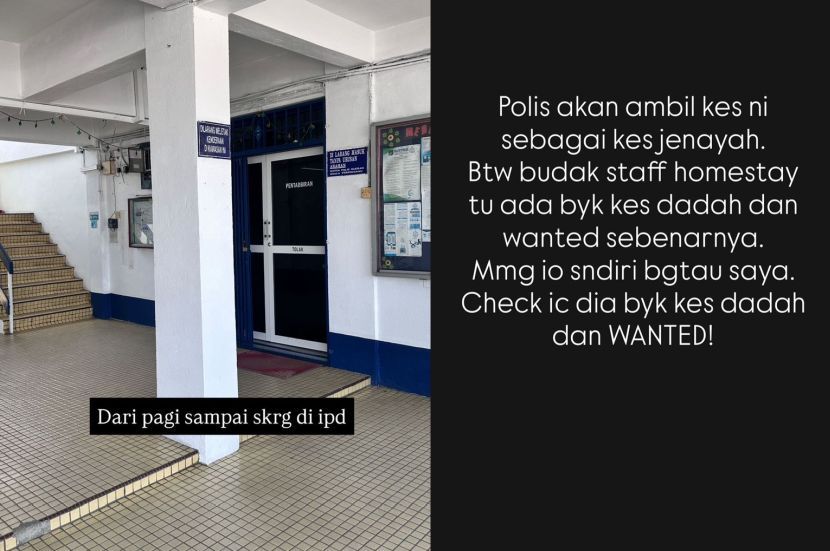 "Malangnya CCTV ada bahagian depan saja. Kemudian saya terus buat laporan polis. Pemilik homestay cuba menghubungi seorang pekerjanya, namun tidak berjawab.
