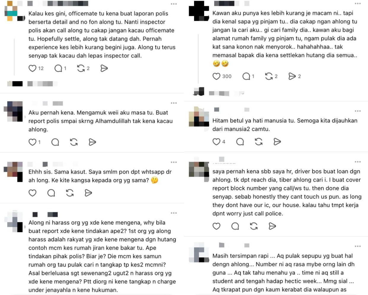 "Aku pernah kena macam ni. Padahal bukan kenal pun bekas pekerja tu. Tiba-tiba ah long hubungi dan ugut bayarkan hutang dia," komen beberapa netizen.