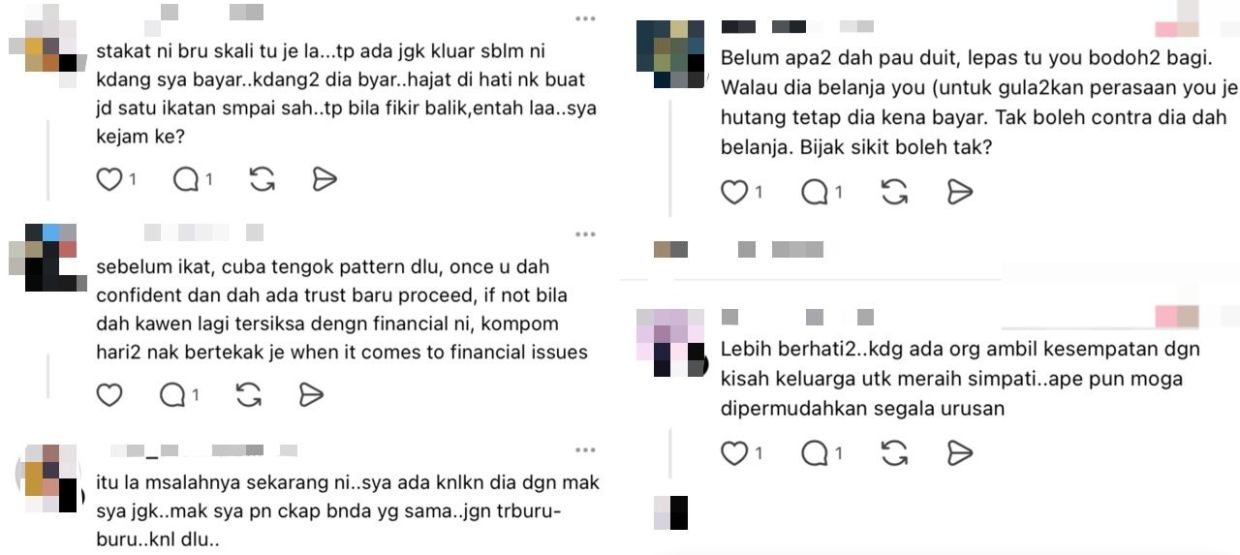 "Sudah pasti hari-hari nak bertekak je bila bercakap mengenai masalah kewangan ni," komen beberapa netizen.