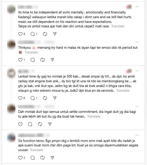 "Sudah tiba masanya untuk berdikari dalam semua aspek, dari segi mental, emosi dan kewangan," antara komen netizen.