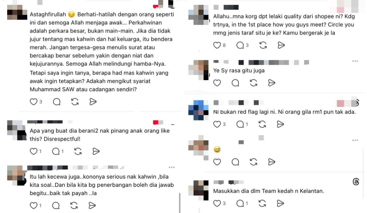 - Netizen syak lelaki itu mungkin berniat kahwin mut‘ah dan sifatnya dianggap membahayakan masa depan wanita.