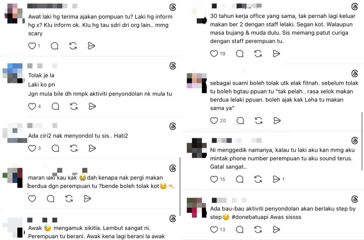 - Netizen pula berpendapat suami sepatutnya menolak ajakan tersebut kerana tetap boleh mengundang fitnah.
