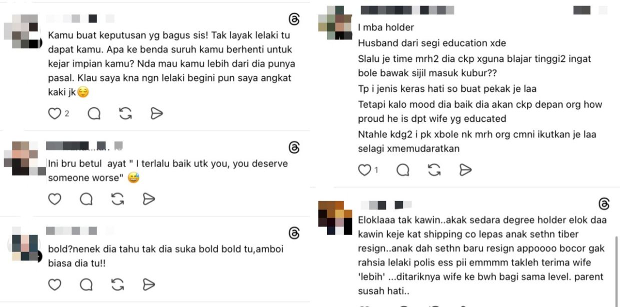 PENGALAMAN pahit dalam percintaan sememangnya boleh meninggalkan trauma mendalam, apatah lagi jika melibatkan pasangan yang toksik.Seorang wanita berkongsi kisah tentang dirinya ketika berusia 25 tahun.yang mana dia cuba dijodohkan dengan cucu kepada rakan datuknya. Wanita itu berkata, pada mulanya dia ditetapkan untuk menjalani fasa taaruf (berkenalan) dengan lelaki berkenaan selama tiga bulan sebelum terus mendirikan rumah tangga.Tempoh perkenalan penting bagi mereka yang ingin berkahwin. -Gambar hiasan AI"Tok (panggilan datuk) pernah jodohkan saya dengan cucu kawan dia. Mereka suruh taaruf selama tiga bulan je kemudian terus kahwin."Tapi lepas satu bulan (berkenalan) saya putuskan untuk tak teruskan sebab dia terlalu toksik. Masa tu saya tengah belajar lagi, sambung pengajian peringkat sarjana (master)."Tapi dia cuma pemegang ijazah sarjana muda (ijazah) je. Jadi dia suruh saya berhenti belajar sebab tak nak saya lebih (pelajaran) daripada dia," jelasnya.ARTIKEL BERKAITAN: Terpaksa menipu ketika bertaaruf, lelaki tergamam si gadis tanya soalan buka aib... Tak rela mengaku kisah video intimARTIKEL BERKAITAN: Wanita tebalkan muka ajak pegawai tentera berkenalan semula, dulu ‘reject’ lamaran sebab tak tahu status - “I pun ada hati dekat you”Difahamkan, lelaki itu turut meminta pengadu menukar cara berpakaian atas alasan dia lebih sukakan perempuan yang bold (berani dalam penampilan).Wanita itu juga mendakwa dia pernah dikasari secara fizikal, membuatkan dirinya serik dan tidak lagi menjalinkan sebarang hubungan selepas itu.Katanya lagi, dia tidak berniat merendahkan sesiapa dari sudut pendidikan sebaliknya mahu menggambarkan bagaimana lelaki berkenaan tidak selesa melihat dirinya lebih berjaya.Seorang wanita mahu dijodohkan dengan cucu kenalan datuk, namun hubungan putus kerana lelaki itu toksik.Lelaki itu larang sambung pengajian sarjana kerana dia hanya berkelulusan ijazah sarjana muda.Dia turut minta wanita itu tukar cara berpakaian kerana sukakan perempuan berpenampilan lebih berani.Wanita itu dakwa pernah dikasari sehingga trauma dan enggan jalin hubungan dengan sesiapa lagi.Dia tidak berniat rendahkan sesiapa dari segi pendidikan, hanya kongsi pengalaman peribadi.Ringkasan ini dijana oleh AI"Saya minta maaf kalau hantaran saya ni ada sakitkan hati mana-mana pihak. Saya tiada niat nak merendahkan sesiapa sebab cara penyampaian salah dan kasar sikit."Apa yang saya sampaikan cuma pengalaman kenal dengan lelaki. Dia hubungan pertama saya jalinkan dan terakhir buat masa sekarang," jelasnya.Rata-rata netizen menyokong tindakannya untuk tidak meneruskan hubungan tersebut kerana menganggap berkahwin dengan lelaki seperti itu hanya akan mendatangkan lebih banyak mudarat.Netizen memberikan pandangan."Tahniah, awak buat keputusan yang baik. Insya-Allah diberikan lebih kemudahan melawan trauma itu. Ramai lelaki yang bukan macam tu."Faham sis, bukan jodoh awak dengan dia. Rasanya dia bukan hina sebab tahap pelajaran tu tapi cara pemikiran lelaki tu yang kawal awak dalam macam-macam hal."Bagus la awak tak teruskan hubungan dengan dia. Jadi gila kalau kahwin dengan orang macam ni nanti," komen beberapa netizen.
