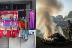 Ibunya terpaksa menukar pakaian kerana terkena cecair busuk daripada plastik sampah.