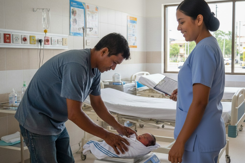 "Misi kat tempat saya lagi suka ayah-ayah yang buat. Kalau datang memang ayah yang tolong buka baju baby nak timbang, pakaikan balik baju, pegang baby, jaga ibu. Suka dengar macam tu.