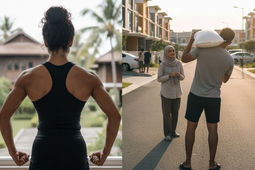 “Macam mana aku nak tolong, kalau badan isteri dah macam body builder, dah terang-terang dia larat angkat,” katanya.