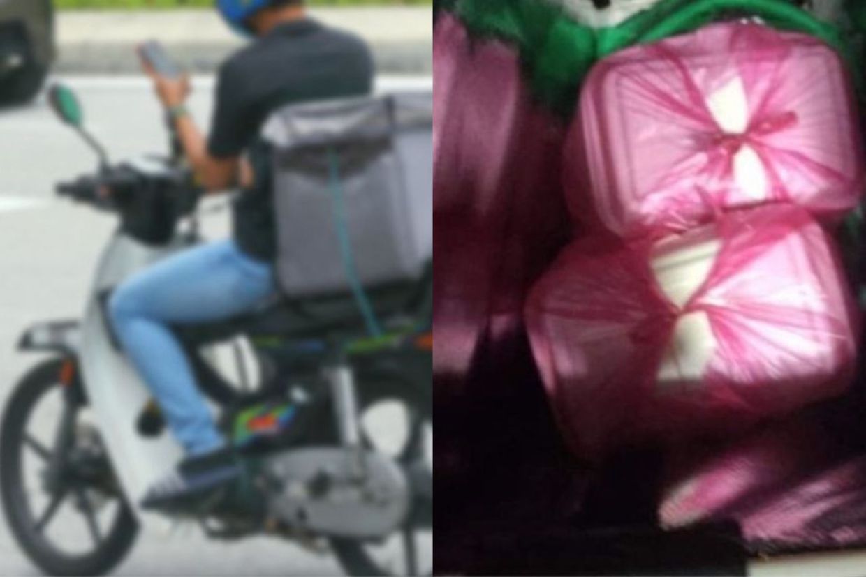 Namun, dia terkejut melihat rider berkenaan mengambil bungkusan makanannya yang diletakkan di bahagian bawah tempat duduk (seat) motosikal.