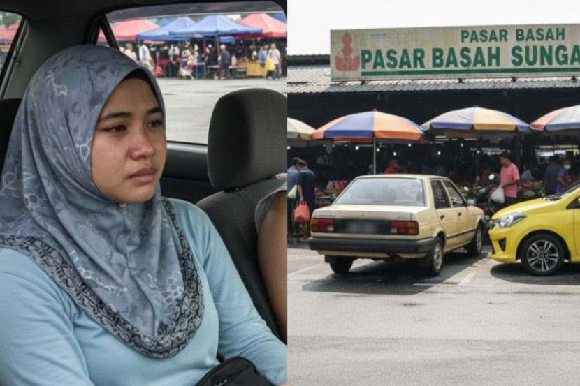 "Kami pergi ke pasar pagi. Masa nak masuk parking, suami aku bawa kereta melulu tak reti nak sabar.