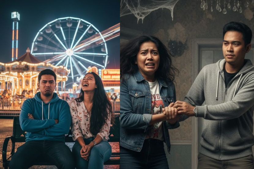 - Dua gadis ketakutan di rumah hantu tiba-tiba pegang tangan suami wanita itu.