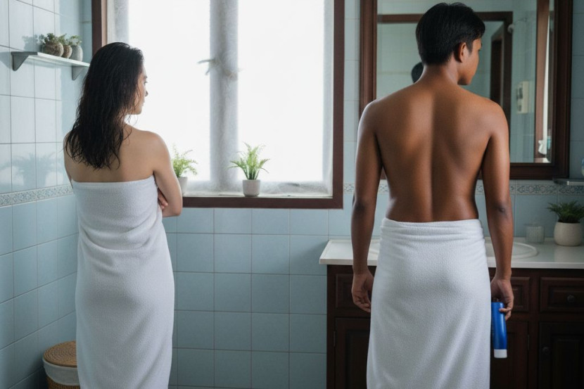 "Aku kata, kan best kalau ada orang mandikan mama macam mama mandikan adik. Tengah-tengah mandi, suami tiba-tiba buka pintu. Dia tenung, kita pun tercengang.