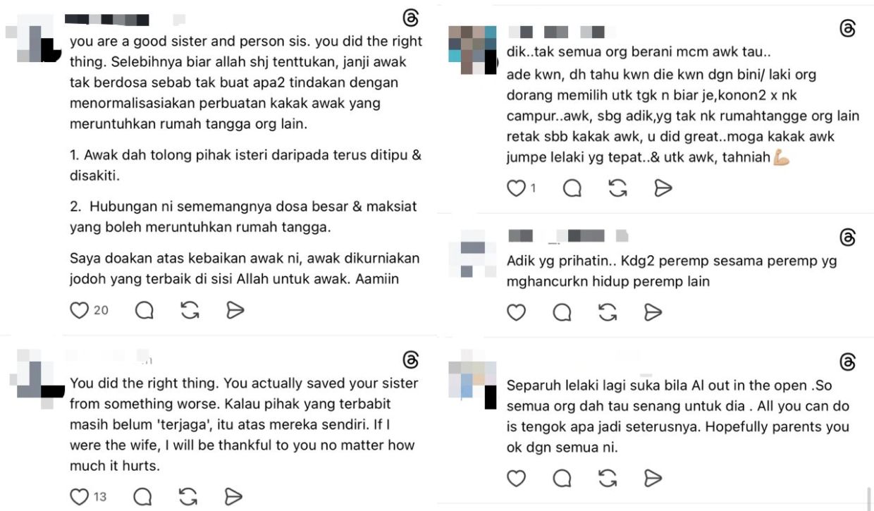 Seperti diduga, rata-rata warga maya menyokong tindakan wanita ini yang berani menghalang kakaknya daripada terus berada dalam hubungan tersebut.