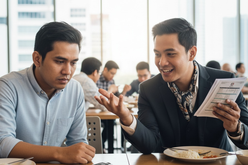 "Malas aku melayan dia rancak bercerita fasal kejayaan dia. Sibuk pula saya nak mendengar kiraan aset dia. Nasib baik makanana dia yang bayarkan.