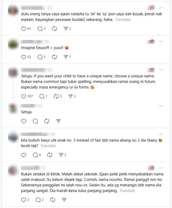"Mak bapa zaman sekarang aneh-aneh. Tak risau ke jadi bahan ejek. Nama, ejaan tak seiring rupa.