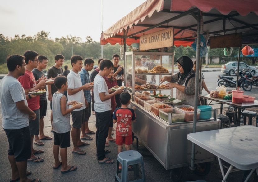 "Jual nasi lemak, tapi kita cakap, kak nak sambal lebih. (Jawab) Kena extra seringgit eh.