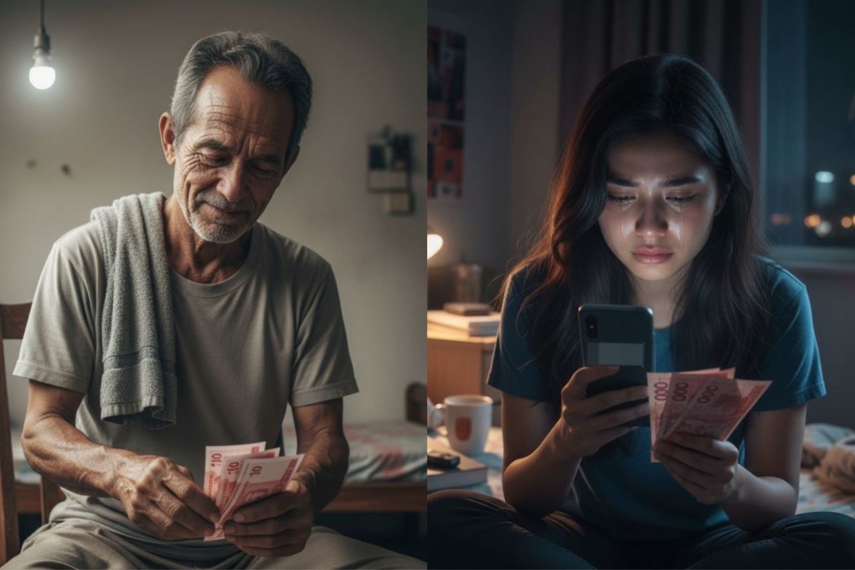 "Haritu ada orang ambil ayah bekerja tapi dia larikan diri lepas pinjam duit dekat semua pekerja termasuk majikan. Duit tu dia habiskan dekat perempuan. Aku tak buang dia cuma jauhkan diri.