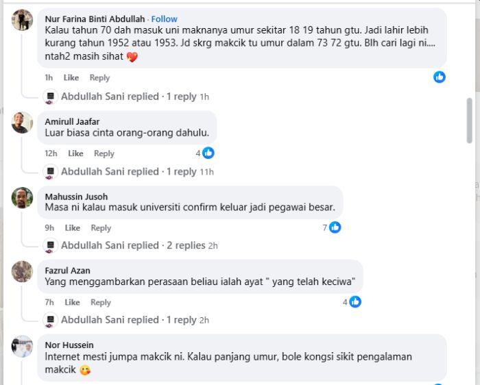 Tidak kurang juga ada yang menyarankan agar netizen cuba menjejaki pasangan berkenaan, sekadar untuk mengetahui kisah masing-masing selepas lebih 50 tahun berlalu.
