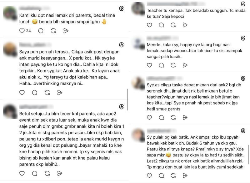 "Saya pun terasa. Cikgu asyik post dengan anak murid kesayangan. Tak perlu kot," komen netizen.