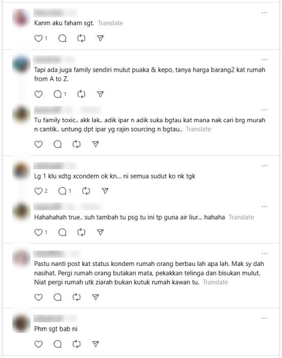 "Pastu nanti post dekat status, condemn rumah orang berbau la apa la," komen netizen.
