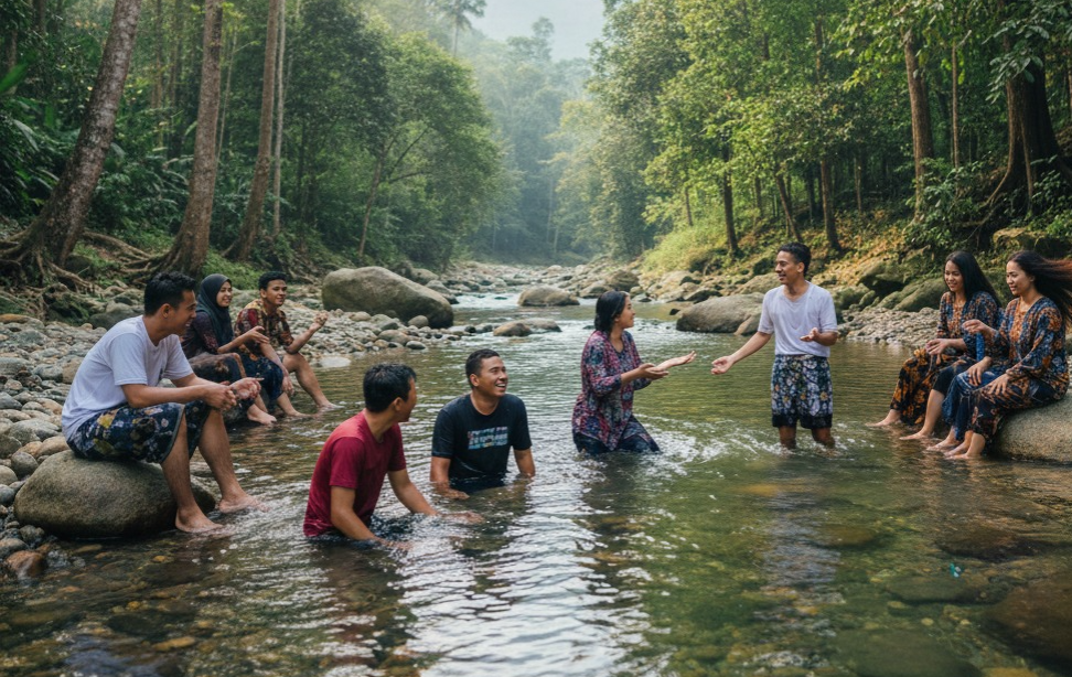 Mandi sungai bersama rakan menjadi aktiviti sosial golongan remaja. -Gambar hiasan AI