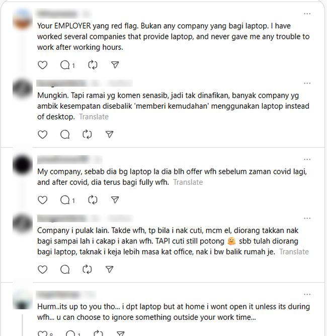 "Elok je bagi laptop. Nak balik, simpan la dalam laci meja... kenapa nak bawa? Benda boleh simpan dekat office," komen netizen.