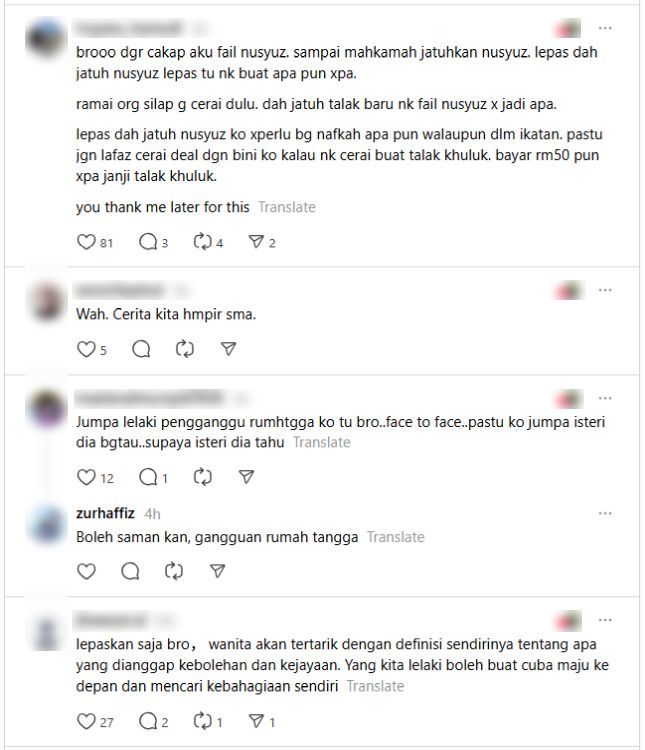 Di ruangan komen, rata-rata netizen meluahkan rasa simpati selain menyarankan beberapa tindakan yang wajar diambil lelaki tersebut demi mempertahankan maruah diri dan masa depan anak-anaknya.