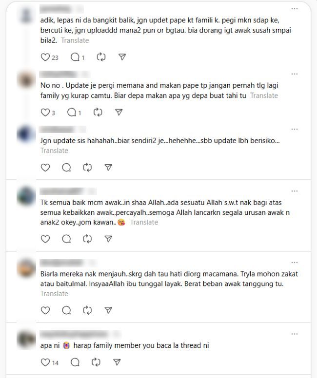 "Lepas ni rahsiakan keselesaan walaupun dengan keluarga sendiri," demikian antara komen netizen.