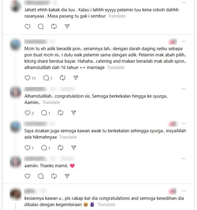 "Jahat ye kakak dia tu. Kalau saya, pelamin tu kena roboh dah rasanya," antara komen netizen.