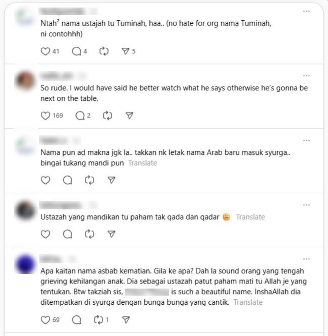"Takkan nak letak nama Arab baru masuk syurga. Bingai tukang mandi pun," antara komen netizen.