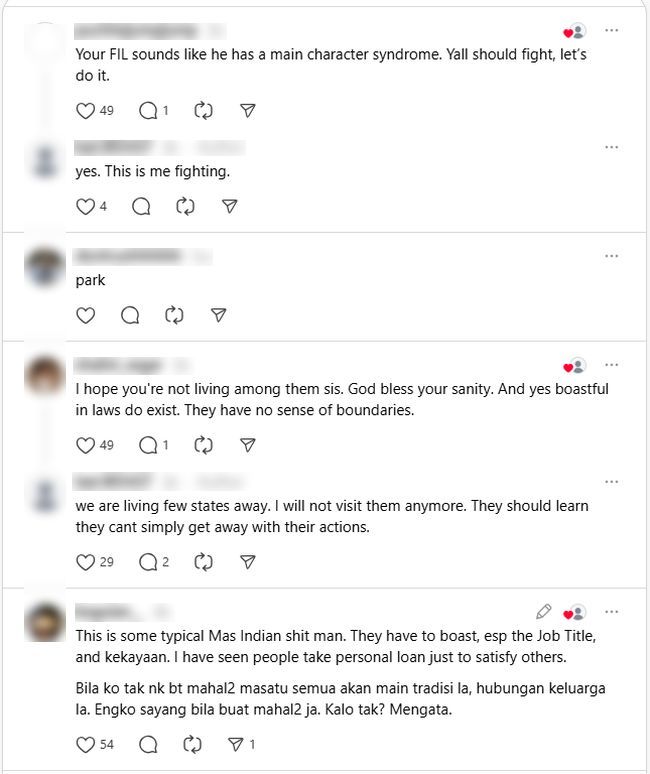"Tapi ibu mentua pula slow talk dengan saya, beritahu jemputan ramai, kuil tak dapat tampung dan sebagainya," tulisnya dalam satu hantaran di Threads.
