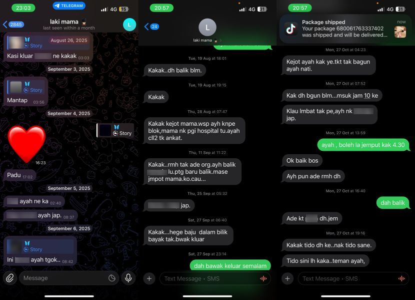 SEORANG gadis tampil berani membuat pendedahan di media sosial mengenai gangguan seksual yang didakwa dilakukan oleh teman lelaki ibunya. Menerusi hantaran di Threads, gadis yang tidak mendedahkan identiti diri itu berkata, gangguan tersebut sudah tiga tahun dialami, iaitu sejak berusia 17 tahun. Menurut gadis berkenaan, dia sudah berkali-kali mengadu kepada ibunya sebelum ini, namun wanita itu menghalangnya membuat laporan kerana mereka sekeluarga bergantung hidup dengan lelaki berkenaan. "Ibu saya dan teman lelakinya duduk serumah. Saya nak buat report ibu cakap akan menyusahkan dia."Sebab kami tak ada kenderaan (dulu). Saya perlu ke kampus dengan kenderaan sebab tak dapat kolej. Tak ada motor sebab motor rosak.Tangkap layar (screenshot) kiriman mesej berbaur lucah daripada kekasih ibunya."Adik saya berusia empat tahun ada talasemia dan perlu pergi hospital setiap bulan," kongsinya.Dia turut memuat naik beberapa tangkap layar mesej lucah yang didakwa dihantar lelaki tersebut kepadanya. Meskipun gangguan yang dilakukan hanya berbentuk kiriman mesej, namun katanya ia sudah cukup membuatkan dirinya ketakutan dan trauma. ARTIIKEL BERKAITAN: Rakan sekerja wanita suka gesel-gesel badan, acah terlanggar walau tak sempit - “Kita ni jaga batas, sangat tak selesa”ARTIKEL BERKAITAN: Gempar adik mengaku terlanjur dengan BF, famili ambil tindakan matang... Ikut hati nak halau dari rumah, tapi tak tergamakGadis itu menambah, dia terpaksa berkurung di dalam bilik kerana bimbang akan keselamatan dirinya dan bagi mengelakkan kejadian yang tidak diingini berlaku."Lillah (demi Allah) dia tak pernah sentuh saya ‘even’ sentuh kulit pun, saya pun sanggup keluar tak makan kalau dia ada. Kekadang sanggup tak keluar bilik dan berlapar seharian," kongsinya lagi sambil menambah, lelaki berkenaan merupakan seorang askar. Bercerita lebih lanjut, gadis itu berkata kemuncak kesabarannya benar-benar diuji selepas dia bersemuka hingga nyaris bertumbuk dengan kekasih ibunya itu, pada Rabu (semalam).Seorang gadis membuat pendedahan mengenai gangguan seksual yang didakwa dilakukan oleh teman lelaki ibunya.Gangguan itu berlaku selama tiga tahun, bermula sejak dia berusia 17 tahun.Ibunya menghalang dia membuat laporan kerana keluarga bergantung kepada lelaki berkenaan.Walaupun gangguan hanya melalui mesej, ia sudah cukup membuatkan dia trauma.Netizen menasihati dia untuk bertindak demi keselamatan diri.Ringkasan ini dijana oleh AIDisebabkan situasi agak tegang, ibunya memutuskan untuk menghalau teman lelakinya itu. "Sekarang jantan tu dah keluar dari rumah dan saya bagi sampai hujung bulan ni untuk dia bawa semua barang keluar."Dulu saya faham ibu tak ada transport jika saya report, sekarang Alhamdulilah kami dah ada transport sendiri ibu dah halau lelaki tu."Jadi saya nak tanya, sebenarnya apa prosesnya kalau saya buat report?" luahnya lagi sambil meminta pandangan warga maya.Reaksi gadis tersebut terhadap beberapa komen netizen.Di ruangan komen, rata-rata netizen meluahkan rasa marah dan jijik dengan kelakuan kekasih ibu gadis berkenaan, malah mereka mendesaknya untuk membuat laporan kepada pihak berkuasa."Kau pergi report polis, gangguan seksual. Nak takut apa, laki tu belum kahwin pun dengan mak kau."Pergi report tunjuk semua bukti. Allah ada, yang penting buat keputusan yang betul. Allah bantu nanti. "Bawa sekali bukti chat ni semua, kalau dia pernah sentuh, awak bagi je tahu semua dekat pegawai penyiasat. Utamakan diri sendiri dulu," demikian antara komen netizen.