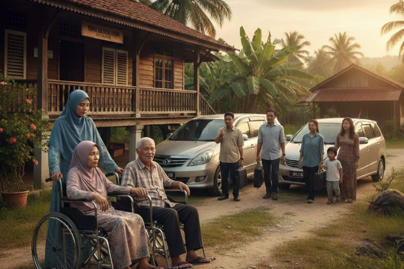 Tidak semua orang sanggup memikul tanggungjawab menjaga ibu bapa di kampung dan menyerahkan tugas kepada adik beradik lain. -Gambar hiasan AI