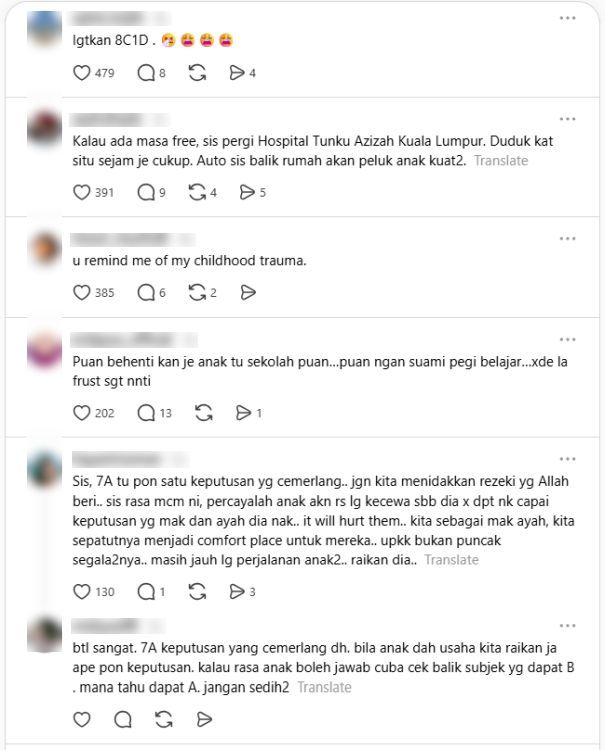 SETIAP kali peperiksaan besar, ibu bapa yang paling berdebar-debar kerana mereka bukan sahaja mengharapkan kejayaan, malah turut merasai tekanan dan kegelisahan dilalui oleh anak-anak.Lebih-lebih lagi selepas keputusan diumumkan, media sosial dipenuhi dengan perkongsian kejayaan cemerlang, tanpa sedar ia boleh memberi tekanan emosi kepada segelintir ibu bapa. Itulah yang diluahkan oleh seorang ibu apabila mengakui dirinya tertekan setiap kali membuka laman sosial kerana rata-ratanya memuat naik keputusan 9A bagi Ujian Penilaian Kelas Kafa (UPKK) anak masing-masing sejak ia diumumkan pada Rabu lalu. Ibu dan bapa sewajarnya memberi sokongan agar anak berusaha untuk belajar bersungguh-sungguh. -Gambar hiasan AI"Bukannya isu tak bersyukur dan tak hargai anak. Tapi dia datang perasaan down tu. Nak berdamai dengan takdir tapi susah betul. "Pagi tadi sembang-sembang dengan husband, dia kata dia terasa lelah dan penat sebab rasa macam-macam dia dah buat usaha untuk anak. Tapi belum excellent.ARTIKEL BERKAITAN: "Takkan nak didik macam askar" - Bapa lempang muka anak 3 tahun sebab bising, beri alasan ikut didikan ibu masa kecilARTIKEL BERKAITAN: “Bodoh la, menyusahkan!” - Bapa baran tengking anak meragam di restoran, potong ‘mood’ nak bersenang-lenang sambil makan"Pagi ni pula saya nangis teruk... tertanya-tanya di mana silapnya," tulisnya dalam hantaran di Threads.Menurut wanita berkenaan, anaknya memperoleh 7A dan 2B untuk peperiksaan tersebut. Tambahnya, sukar untuk menggambarkan perasaan apabila merasakan sudah berusaha semaksimum mungkin demi anak, tetapi keputusan tidak seperti yang diimpikan. Seorang wanita tertekan apabila media sosial dipenuhi perkongsian keputusan cemerlang UPKK anak masing-masing.Dia dan suami kecewa anak memperoleh 7A 2B.Bukan tidak bersyukur, tetapi dia mengakui terlalu 'down' kerana pelbagai usaha telah dibuatDia tertanya-tanya di mana silap anaknya tidak memperoleh 9A.Perkongsian itu mengundang kecaman warga maya yang menyifatkannya tidak bersyukur dan bersikap toksik.Ringkasan ini dijana oleh AI"Susah nak explain perasaan ni. Sampai ada rasa down dan putus asa tak nak fokus untuk PKSK (Pentaksiran Kemasukan Sekolah Khusus) dah," luahnya lagi.Perkongsian berkenaan mengundang perhatian warga maya, rata-rata bukan saja meluahkan kesal dengan sikap wanita berkenaan, malah mengecamnya kerana tidak pandai bersyukur.Malah ramai juga menganggap wanita itu sebagai seorang ibu yang bersifat toksik terhadap anaknya.Sebahagian daripada komen netizen.Merendah-rendahkan anakMenurut pendakwah bebas, Ustazah Asma' Harun, merendah-rendahkan anak adalah salah satu daripada 10 dosa ibu bapa terhadap zuriat mereka."Dalam usaha mendidik anak mengikut cara Nabi Muhammad SAW, penting bagi ibu bapa memahami kesan besar daripada setiap kata dan perlakuan terhadap anak-anak mereka," menurutnya.Selain merendah-rendahkan anak, antara dosa lain ibu bapa adalah menengking, membandingkan dengan anak orang lain, mendoakan perkara yang buruk dan membuka aib anak di hadapan orang lain.