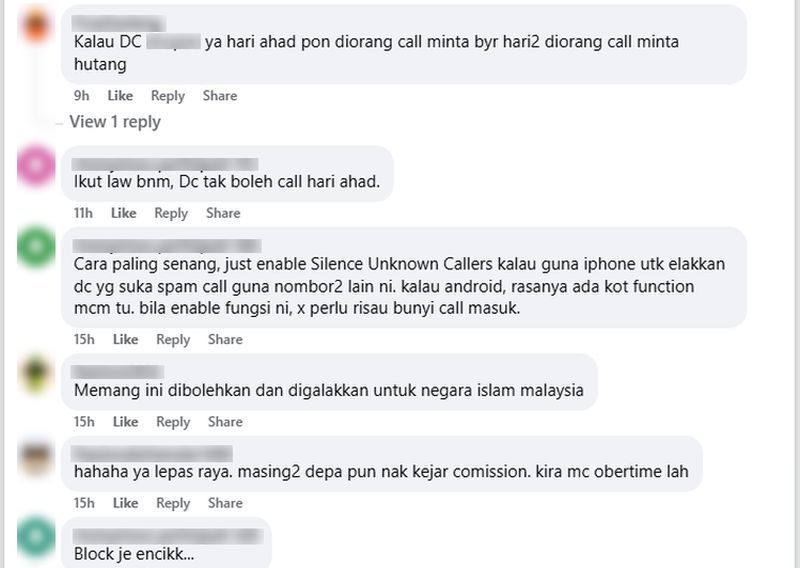 TIDAK ramai daripada kita mampu lari daripada komitmen kewangan termasuk ada hutang perlu dilunaskan setiap bulan.Namun dalam usaha bebas hutang, ada segelintir pihak yang didakwa mengambil kesempatan dan bertindak melampaui batas sehingga menimbulkan tekanan emosi kepada peminjam. Perkara sama dilalui seorang individu yang mendakwa dia sentiasa berada dalam keadaan tertekan akibat gangguan berterusan daripada pihak pemungut hutang atau debt collector.Dakwanya, setiap hari dia akan menerima panggilan tanpa henti termasuk pada hari cuti dan ada di antaranya menggunakan nombor berbeza."Ini dah kira tahapa gangguan ke? Hari Ahad, hari cuti tapi saya kena spam panggilan tanpa henti dari pagi.Individu yang berhasrat mengambil pinjaman disarankan memahami syarat serta terma dengan teliti. -Gambar hiasan AI"Setakat petang sahaja, lebih 12 panggilan masuk menggunakan pelbagai nombor berbeza," luahnya dalam satu hantaran yang dikongsikan di laman Majlis Bankrupt Malaysia.Tambah individu tersebut, meskipun dihimpit hutang namun dia komited melangsaikan hutang yang ada dan tidak pernah culas dalam membuat pembayaran bulanan.Ini termasuk pinjaman dengan Perbadanan Tabung Pendidikan Tinggi Nasional (PTPTN dan Perbadanan Tabung Pembangunan Kemahiran (PTPK)."PTPTN dan PTPK kedua-duanya saya bayar elok setiap bulan."Untuk pinjaman peribadi bank pula, baki akhir tinggal sekitar RM1,300 sahaja lagi. Bukan berjuta pun sampai kena ganggu macam ini," ujarnya lagi.ARTIKEL BERKAITAN: Pemungut hutang ‘spam call’ majikan, ugut penghutang sampai ke tempat kerja? Jangan takut, Malaysia ada undang-undangARTIKEL BERKAITAN: Dulu herdik, perli orang susah... Pemungut hutang kini sempit rezeki, anggap diri terima kifarahJusteru, dia mempersoalkan tindakan syarikat pemungut hutang yang didakwa menggunakan sistem auto-dialer sehingga menyebabkan panggilan dibuat tanpa henti tanpa mengambil kira masa, termasuk hari cuti."Ada sesiapa pernah kena macam ini? Syarikat pemungut hutang mana yang biadab guna auto dialer sampai macam ini sekali?" soalnya.Lebih membimbangkan, individu berkenaan turut mendakwa gangguan tersebut pernah memberi kesan besar terhadap kerjayanya sebelum ini."Saya sampai terpaksa berhenti kerja sebelum ini pun sebab pemungut hutang. Mereka hubungi HR (jabatan sumber manusia) tanpa henti. Memang langsung tidak ada etika," luahnya.Disebabkan itu, dia kini sedang mempertimbangkan membuat aduan rasmi kepada Bank Negara Malaysia (BNM) atau mengambil tindakan undang-undang berhubung gangguan dialaminya.Seorang individ tertekan akibat gangguan berterusan daripada pemungut hutang yang menghubunginya tanpa henti, termasuk pada hari cuti.Individu itu menegaskan dia masih membayar pinjaman secara konsisten, malah baki pinjaman peribadi hanya sekitar RM1,300.Dia turut berkongsi gangguan daripada pemungut hutang sebelum ini yang menghubungi tempat kerja sehingga menjejaskan kerjayanya.Dia mempertimbangkan untuk membuat aduan kepada Bank Negara Malaysia atau mengambil tindakan undang-undang.Netizen memberikan sokongan agar dia mengambil tindakan susulan privasi diganggu.Ringkasan ini dijana oleh AI"Saya memang sudah hilang sabar. Kalau buat aduan dekat BNM atau ambil tindakan undang-undang sebab gangguan privasi, ada tindakan ke?" ujarnya.Perkongsian tersebut nyata mengundang perhatian ramai, malah ada yang turut berkongsi pengalaman serupa.Ramai tampil memberi pelbagai cadangan, termasuk menyokong hasratnya mengambil tindakan undang-undang kerana pelanggaran hak privasi."Kalau ikut undang-undang BNM, pemungut hutang tidak boleh telefon pada hari Ahad."Install aplikasi Truecaller! Dia block most of spammer! Sampai kadang bank call untuk inform payment overdue pun tak boleh masuk," komen netizen. Sebahagian daripada komen netizen.Sekadar maklumat tambahan, BNM ada menggariskan had jelas tentang perkara boleh dilakukan dan sebaliknya oleh pemungut hutang.Pemungut hutang tidak boleh menakut-nakutkan, mengganggu atau menghina peminjam sama ada secara lisan mahupun fizikal.Ini termasuk menghubungi sebelum pukul 8 pagi dan selepas 9 malam tanpa kebenaran dan mendedahkan maklumat hutang kepada pihak lain.Jika berdepan gangguan sedemikian, peminjam dinasihatkan untuk membuat aduan kepada Unit Aduan bank mengenai tindakan pemungut hutang berkenaan.