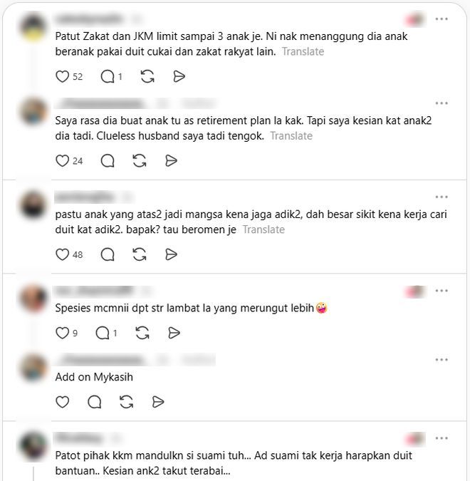 PERANCANGAN keluarga sering kali dipandang ringan, sedangkan ia memainkan peranan penting dalam memastikan kesejahteraan ibu, anak serta kestabilan ekonomi sesebuah keluarga.Lebih-lebih lagi bagi golongan berpendapatan rendah, aspek ini bukan sekadar pilihan, tetapi satu keperluan yang boleh menentukan kualiti hidup jangka panjang. Di Threads, seorang wanita berkongsi situasi yang membuka mata ketika dia mengunjungi sebuah klinik desa untuk mendapatkan suntikan imunisasi anaknya.Menurutnya, suasana pada awalnya tenang seperti biasa sehinggalah dia terdengar perbualan di antara seorang jururawat dengan ibu hamil.Perancangan keluarga bukan sekadar pilihan, tetapi satu keperluan yang boleh menentukan kualiti hidup jangka panjang. -Gambar hiasan AI"Puan baru bersalin bulan 12 hari tu. Ni mengandung lagi ni. Puan ambillah perancang. Kalau tak mampu, saya tolong bayarkan RM1 untuk perancang tu," kata jururawat tersebut dengan nada lembut, cuba memberi nasihat kepada ibu hamil berkenaan.Namun, respons yang diterima cukup mengejutkan dan membuatkan wanita berkenaan serta pengunjung klinik yang lain tersentak."Eh suka hati sayalah nak mengandung dua kali setahun pun. Bukan kau yang kandung kandungan aku pun," balas si ibu hamil.ARTIKEL BERKAITAN: Wanita persoal kewajaran miliki ramai anak, suruh ibu bapa kira dulu kemampuan diri sebelum cakap soal rezekiARTIKEL BERKAITAN: Simpati nasib pakcik sebelah rumah, anak tak ramai tapi bergaduh adik-beradik... Pemuda bandingkan dengan jiran 13 zuriatMenurut wanita yang berkongsi kisah tersebut, seluruh klinik tiba-tiba menjadi sunyi dan suasana yang tadinya biasa terus berubah menjadi janggal.Apabila tiba gilirannya, jururawat tersebut hanya menggelengkan kepala sebelum menjelaskan situasi sebenar."Itu anak dia nombor sembilan, puan. Saya hanya nasihatkan," kata jururawat berkenaan kepadanya.Lebih mengejutkan apabila dia diberitahu bahawa suami kepada wanita hamil tersebut juga tidak bekerja.Seorang wanita berkongsi kisah ketika ke klinik desa untuk imunisasi anaknya.Dia terdengar jururawat menasihatkan ibu hamil yang baru bersalin agar mengambil perancang keluarga.Ibu hamil tersebut memberi respon kasar hingga membuat ramai tersentak.Rupanya ibu hamil itu sedang mengandung anak kesembilan dan bergantung pada bantuan zakat dan JKM kerana suami tak bekerja.Netizen menekankan kepentingan perancangan keluarga terutama bagi golongan berpendapatan rendah.Ringkasan ini dijana oleh AI"Mengharapkan Zakat dan Jabatan Kebajikan Masyarakat (JKM). Dekat sini baru saya faham. Kenapa B40 perangai macam ni. Kurangnya pendedahan kepada pendidikan."Anak berderet masuk klinik. Saya tengok pun pening," akhirinya.Di ruangan komen, perkongsian tersebut mengundang pelbagai reaksi dalam kalangan netizen.Sebahagian daripada reaksi warga maya.Rata-ratanya bersetuju bahawa isu perancangan keluarga tidak boleh dipandang enteng, terutama apabila melibatkan kemampuan kewangan dan kesejahteraan anak-anak.Ada yang berpendapat bahawa pendekatan pendidikan dan kesedaran perlu dipertingkatkan agar setiap pasangan lebih memahami kepentingan merancang jarak kehamilan."Lepas tu anak yang atas-atas jadi mangsa kena jaga adik-adik, dah besar sikit kena kerja cari duit."Patut Zakat dan JKM limit sampai tiga anak je. Ini nak menanggung dia anak beranak pakai duit cukai dan zakat rakyat lain."Spesies yang sama tepek kod QR sana sini mengharap bantuan tanpa usaha. Lepas tu salahkan kerajaan," komen sebahagian netizen.