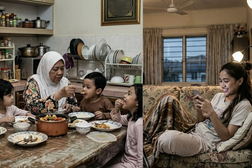 Ada anak menantu sanggup membiarkan ibu menjaga anak mereka walaupun ketika sedang bercuti. -Gambar hiasan AI