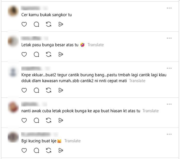 HIDUP berjiran perlu berlandaskan sikap saling menghormati dan bertolak ansur namun ada segelintir tindakan tanpa pertimbangan boleh mencetuskan rasa tidak selesa dan lebih parah pergaduhan.Seorang individu meluahkan kekecewaan terhadap sikap jirannya yang didakwa tiada common sense apabila memelihara burung dan meletakkan sangkar menghala rumahnya. Dakwanya, sarang itu diletakkan di atas tembok berhampiran peti surat kediamannya yang menimbulkan rasa kurang selesa.Hubungan sesama jiran akan harmoni jika masing-masing menghormati antara satu sama lain. -Gambar hiasan AI"Penat aku bayar bulan-bulan, atas mailbox aku juga kau letak. Baru satu (seekor), dalam rumah ada lagi lima sangkar nak susun atas dinding tu. Nak menyesal, dah beli pun (rumah)," katanya.Individu itu menjelaskan, dia tidak mempunyai masalah jika jirannya mahu mendedahkan haiwan peliharaan tersebut kepada cahaya matahari (sun bathing), namun berharap ia dilakukan secara lebih berhemah."Jemur tu tak kisah tapi biarlah berpada. Banyak alternatif lain... beli penyidai gantung untuk sangkar-sangkar tu," ujarnya.ARTIKEL BERKAITAN: Tinggal di taman perumahan pun dah tak tenang... Jiran bela ayam, siang malam asyik berkokokARTIKEL BERKAITAN: Hari-hari sedut bau najis, jiran pencinta kucing susun ‘litter box’ belakang rumah… Individu tak berani bina tembok, risau gaduhTambahnya lagi, isu tersebut bukan sahaja melibatkan sangkar burung, tetapi membabitkan beberapa perkara lain yang didakwa mengganggu ruang peribadinya.Dedahnya, jirannya itu pernah mengambil bungkusan miliknya yang diletakkan dalam peti surat selain sesuka hati meletakkan barang seperti kotak rokok di atas tembok sehingga memasuki kawasan rumahnya."Kadang masa ambil bil pun rasa nak buka saja pintu sangkar tu. Geram," katanya.Seorang individu kecewa dengan sikap jiran yang memelihara burung hingga mengganggu ruangnya.Dia mendakwa jiran tiada pertimbangan apabila sangkar diletakkan menghala ke rumahnya.Dakwanya, jiran itu turut ambil bungkusan tempahannya dan letak barang hingga masuk kawasan rumahnya.Walaupun pernah bersemuka, dia mendakwa jirannya masih berdegil.Netizen menasihatkan supaya ambil tindakan tegas termasuk membuat laporan jika perbincangan tidak berhasil.Ringkasan ini dijana oleh AIMenurut individu itu, dia juga pernah bersemuka dengan jirannya bagi membincangkan perkara berkenaan, namun tiada perubahan berlaku."Kita harap beli rumah dengan harga sekian dapatlah mentaliti yang baik tapi sebaliknya," katanya lagi.Perkongsian tersebut mengundang pelbagai reaksi dalam kalangan warga maya.Sebahagian antara komen netizen.Rata-ratanya menasihatkan agar dia mengambil tindakan lebih tegas sekiranya jalan perbincangan masih tidak membuahkan hasil."Report Perhilitan, kalau tak ada lesen memang 'mendapat'. Kalau saya, saya angkat atau tolak masuk kawasan rumah dia... gaduh pun gaduhlah, peduli apa."Ambil gambar. Hantar pada yang sepatutnya. Padan muka dia," demikian antara komen netizen.