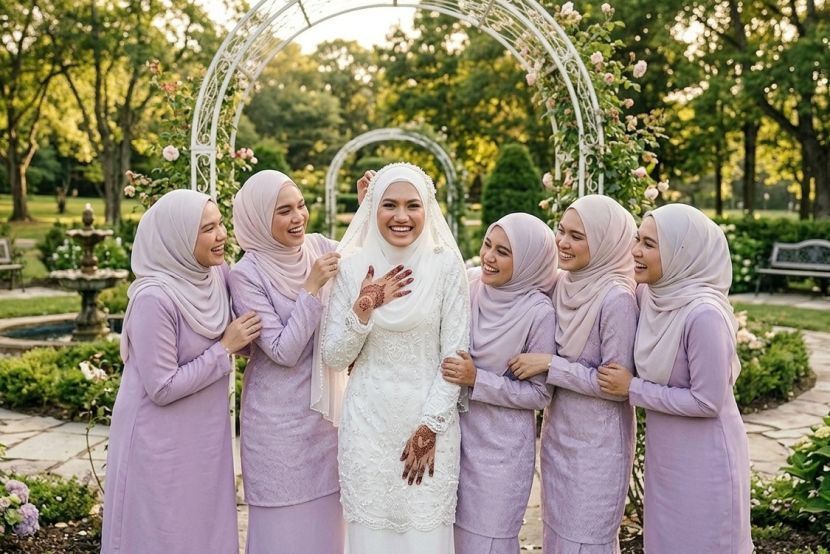 Bridesmaid sepatutnya meraikan pengantin dengan penuh hormat dan berpada-pada dalam penampilan. -Gambar hiasan AI